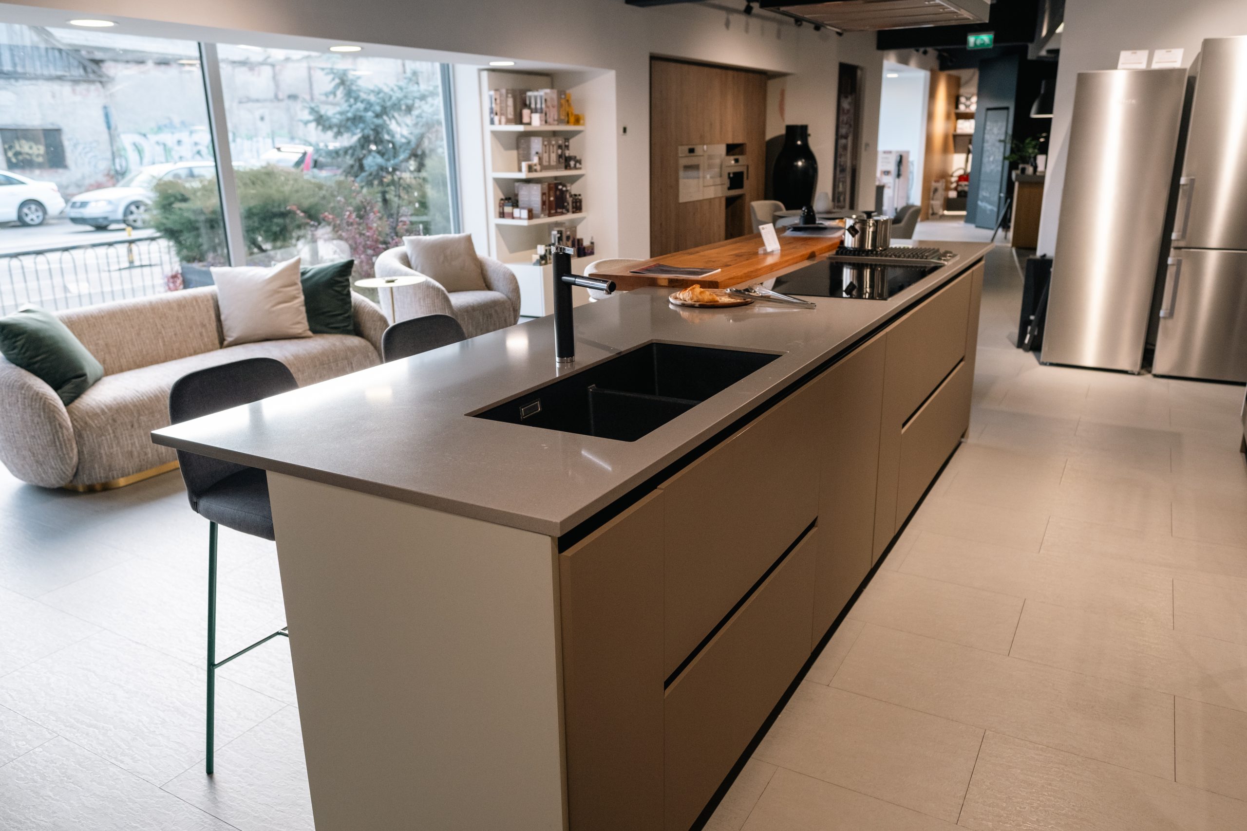 Blat din quartz – durabil, ușor de întreținut și cu un finisaj sofisticat.