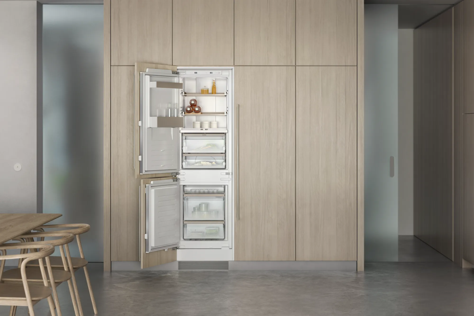 Combina frigorifică Gaggenau RB289300 din Seria 200 este creată pentru bucătăriile moderne care își doresc un aparat premium, integrabil și fiabil. Cu dimensiunile de 177,2 × 55,8 cm, aceasta oferă un spațiu generos pentru depozitarea alimentelor, dar și un design elegant, perfect pentru mobilierul încorporat.