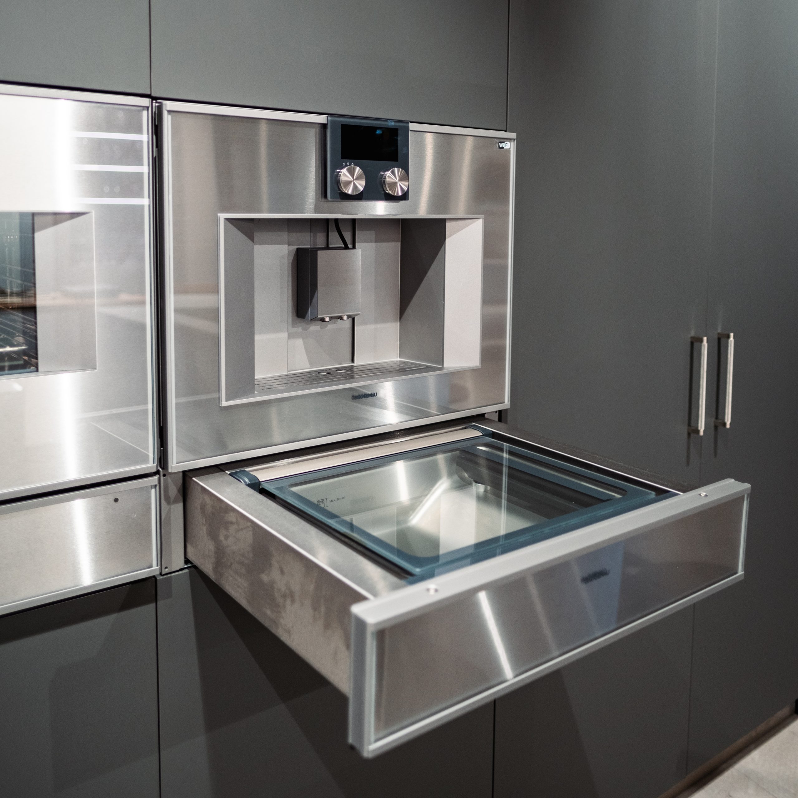 Produs OUTLET – acest espressor complet automat a fost utilizat în bucătăria activă a showroom-ului, fiind folosit pentru prepararea regulată a băuturilor în scop demonstrativ. Prezintă urme normale de uzură, însă funcționează perfect, conform standardelor Gaggenau.