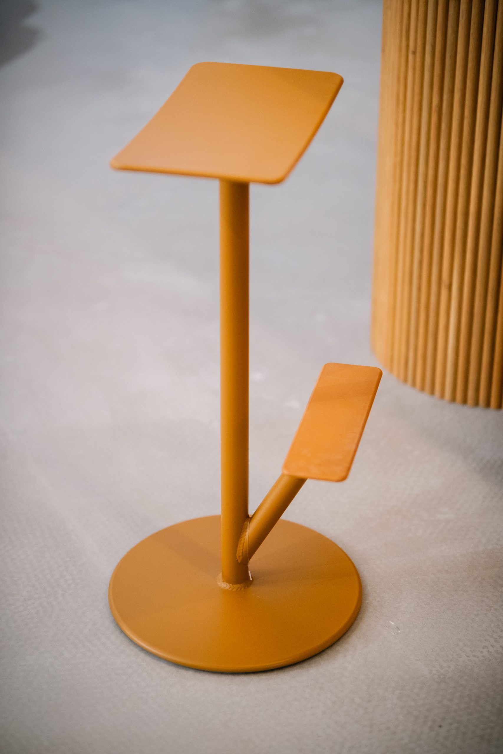 Realizat integral din metal vopsit, scaunul este solid si stabil, fiind gandit pentru utilizare zilnica. Sezutul cu forma ergonomica si suportul pentru picioare integrat ofera confort, chiar si la utilizare indelungata. Finisajul portocaliu adauga energie si personalitate, fiind ideal pentru interioare moderne, minimaliste sau spatii unde vrei o pata de culoare controlata.